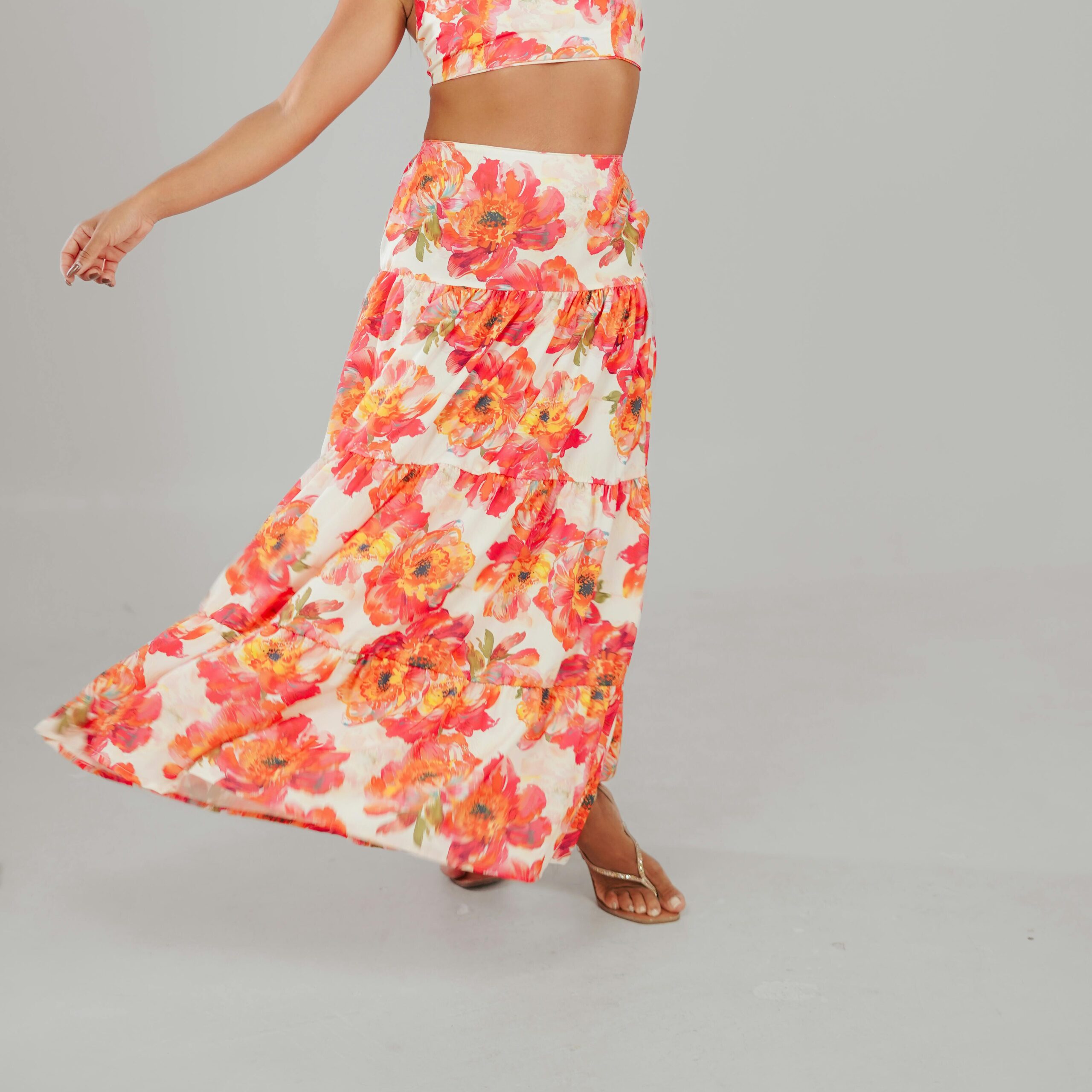 Ta elegancka rozkloszowana spódnica midi to must-have w każdej garderobie! Wykonana z wysokiej jakości poliestru, łączy w sobie wygodę i styl. Jej lekka i przewiewna struktura sprawia, że idealnie sprawdzi się zarówno w ciepłe dni, jak i podczas wiosennych czy letnich wieczorów.