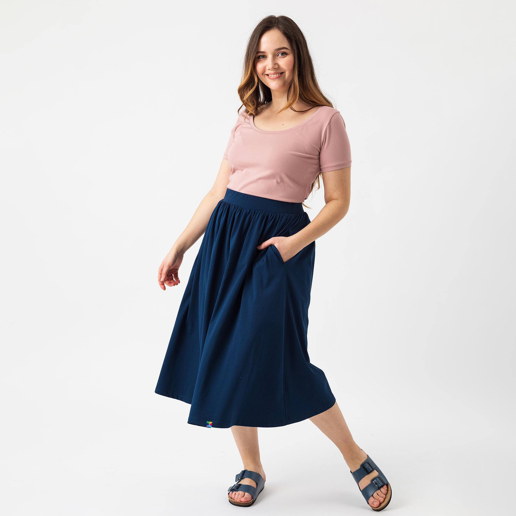 Ta elegancka rozkloszowana spódnica midi to must-have w każdej garderobie! Wykonana z wysokiej jakości poliestru, łączy w sobie wygodę i styl. Jej lekka i przewiewna struktura sprawia, że idealnie sprawdzi się zarówno w ciepłe dni, jak i podczas wiosennych czy letnich wieczorów.